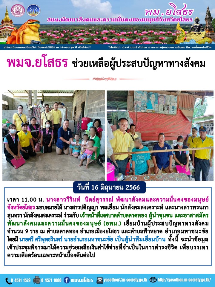 พมจ. ยโสธร ช่วยเหลือผู้ประสบปัญหาทางสังคม (16 มิถุนายน 2566)