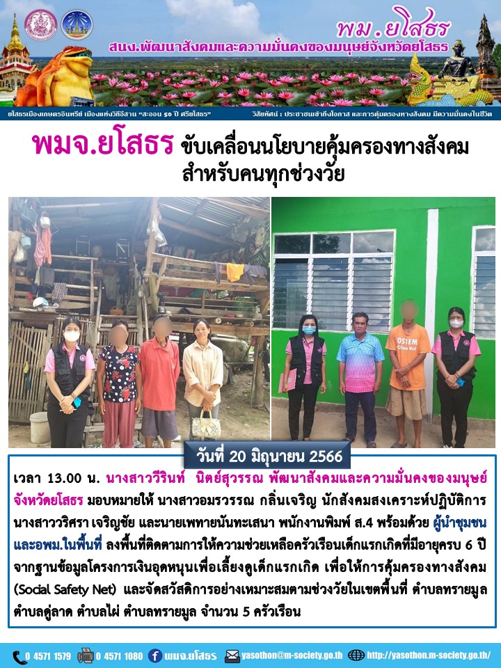 พมจ.ยโสธร ขับเคลื่อนนโยบายคุ้มครองทางสังคมสำหรับทุกช่วงวัย (20 มิถุนายน 2566)