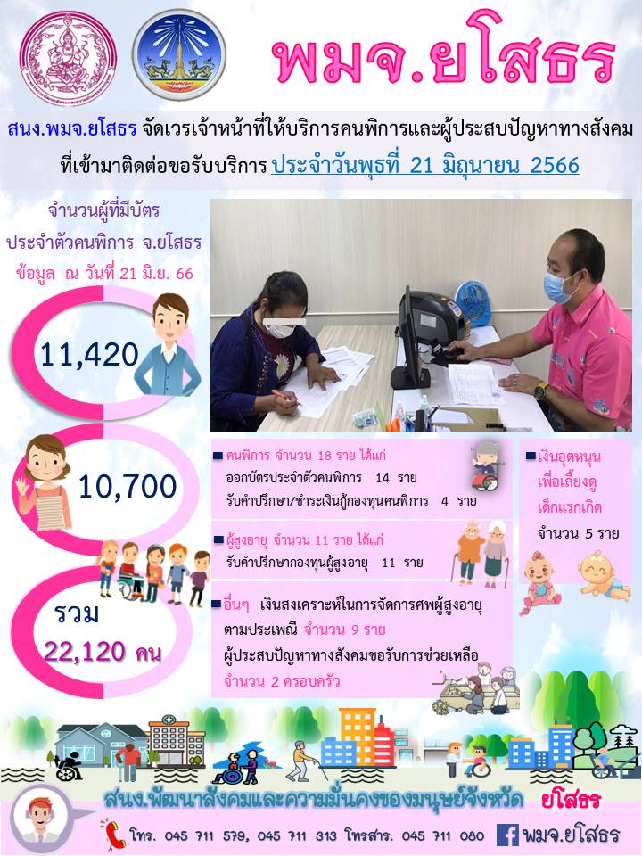 สนง.พมจ.ยโสธร จัดเวรเจ้าหน้าที่ให้บริการคนพิการและผู้ประสบปัญหาทางสังคม ที่เข้ามาติดต่อขอรับบริการ (21 มิถุนายน 2566)