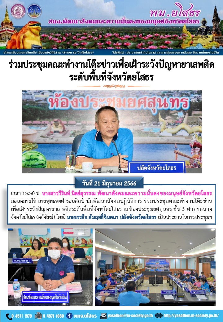 ร่วมประชุมคณะทำงานโต๊ะข่าวเพื่อเฝ้าระวังปัญหายาเสพติดระดับพื้นที่จังหวัดยโสธร (21 มิถุนายน 2566)