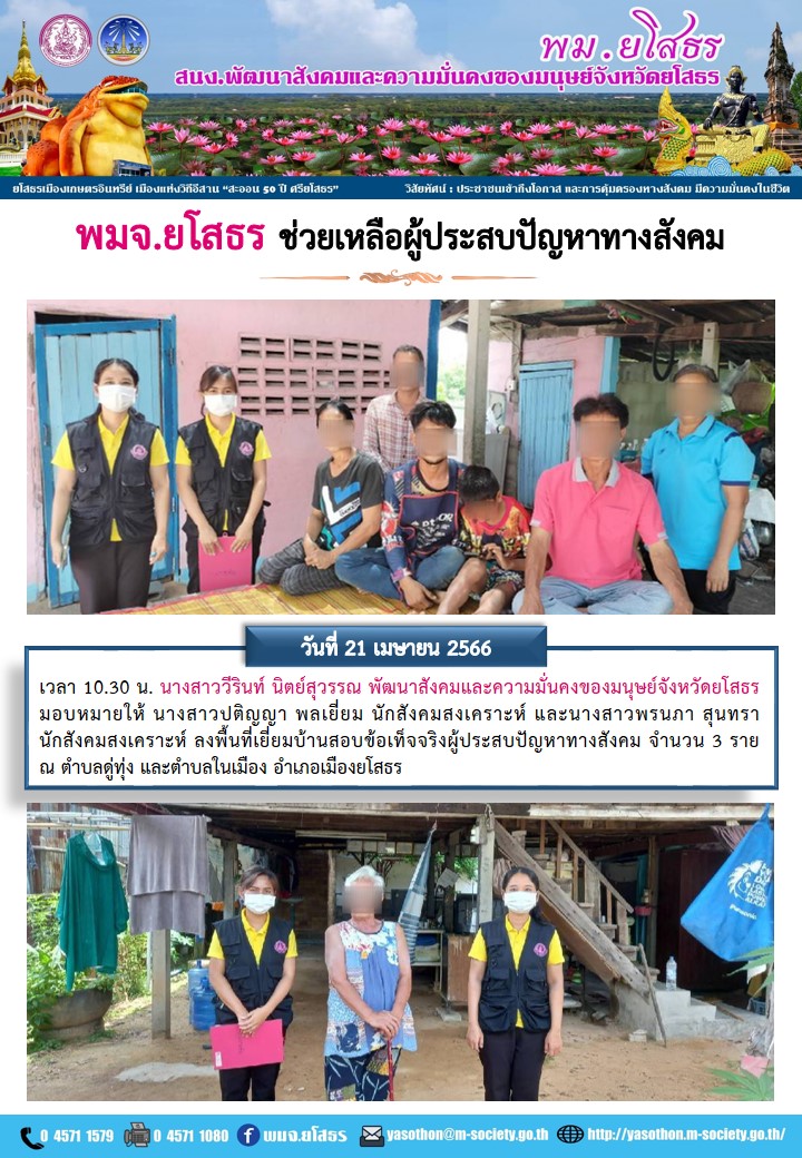 พมจ.ยโสธร ช่วยเหลือผู้ประสบปัญหาทางสังคม (26 มิถุนายน 2566)