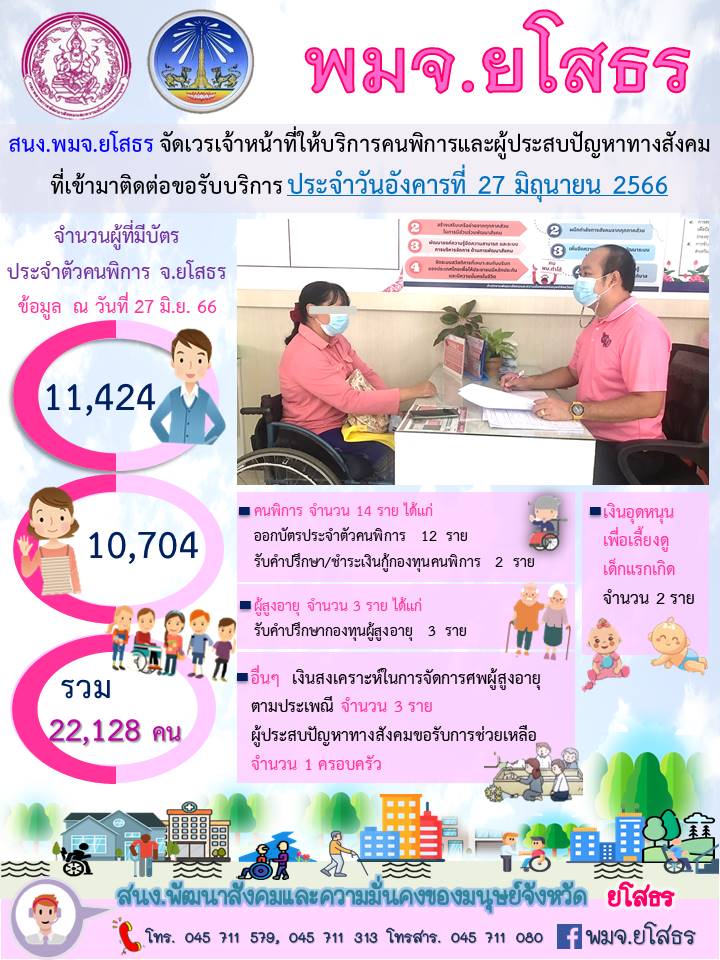 สนง.พมจ.ยโสธร จัดเวรเจ้าหน้าที่ให้บริการคนพิการและผู้ประสบปัญหาทางสังคม ที่เข้ามาติดต่อขอรับบริการ (27 มิถุนายน 2566)