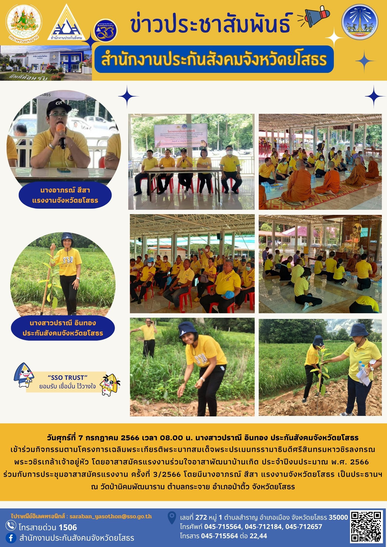 วันศุกร์ที่ 7 กรกฎาคม 2566 เวลา 08.00 น. นางสาวปราณี อินทอง ประกันสังคมจังหวัดยโสธร