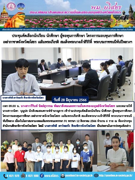 เข้าร่วมประชุมคัดเลือกนักเรียน นักศึกษา ผู้ขอทุนการศึกษา โครงการมอบทุนการศึกษา เหล่ากาชาดจังหวัดยโสธร (28 มิถุนายน 2566)