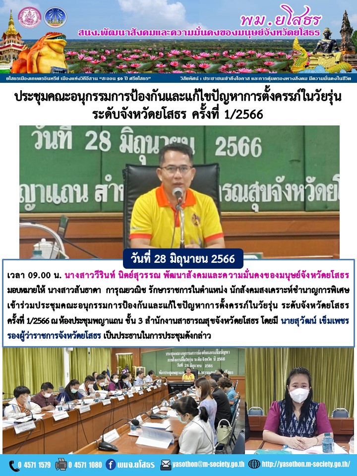 เข้าร่วมประชุมคณะอนุกรรมการป้องกันและแก้ไขปัญหาการตั้งครรภ์ในวัยรุ่น ระดับจังหวัดยโสธร ครั้งที่ 1/2566 (28 มิถุนายน 2566)