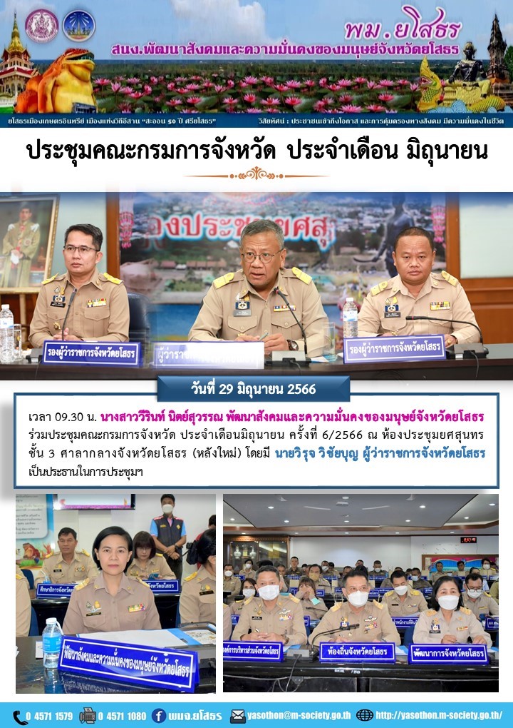 พมจ.ยโสธร ร่วมประชุมคณะกรมการจังหวัด ประจำเดือนมิถุนายน ครั้งที่ 6/2566 (29 มิถุนายน 2566)