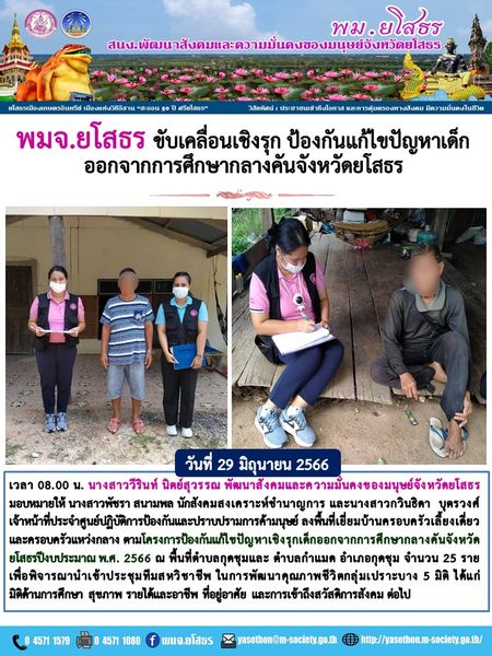 พมจ.ยโสธร ขับเคลื่อนเชิงรุก ป้องกันแก้ไขปัญหา เด็กออกจากการศึกษากลางคันจังหวัดยโสธร (29 มิถุนายน 2566)