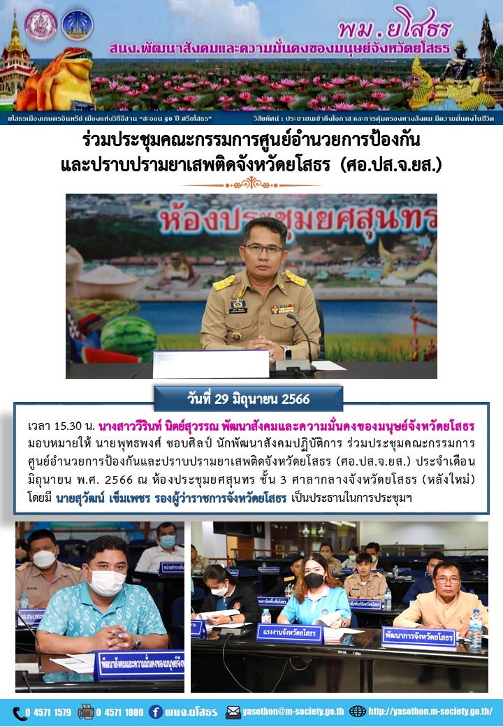 ร่วมประชุมคณะกรรมการศูนย์อำนวยการป้องกันและปราบปรามยาเสพติดจังหวัดยโสธร (ศอ.ปส.จ.ยส.) ประจำเดือนมิถุนายน พ.ศ. 2566 (29 มิถุนายน 2566)