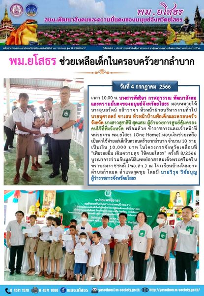 พม.ยโสธร ช่วยเหลือเด็กในครอบครัวยากลำบาก (4 กรกฎาคม 2566)