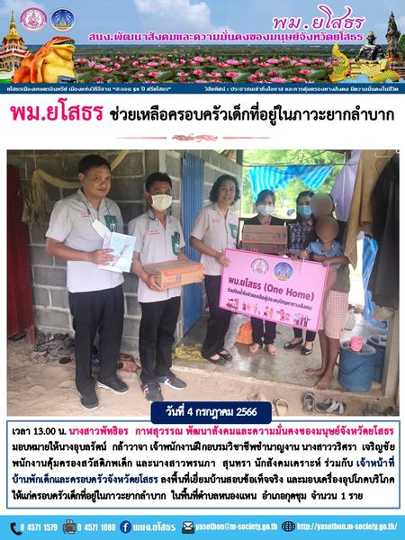 พมจ.ยโสธร ช่วยเหลือครอบครัวเด็กที่อยู่ในภาวะยากลำบาก (4 กรกฎาคม 2566)