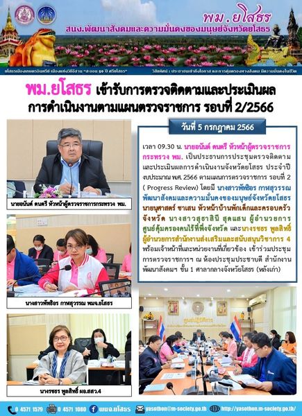 พม.ยโสธร เข้ารับการตรวจติดตามและประเมินผล การดำเนินงานตามแผนตรวจราชการ รอบที่ 2/2566 (5 กรกฎาคม 2566)