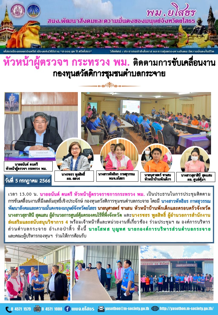 หัวหน้าผู้ตรวจฯ กระทรวง พม. ติดตามการขับเคลื่อนงาน กองทุนสวัสดิการชุมชนตำบลกระจาย (5 กรกฎาคม 2566)