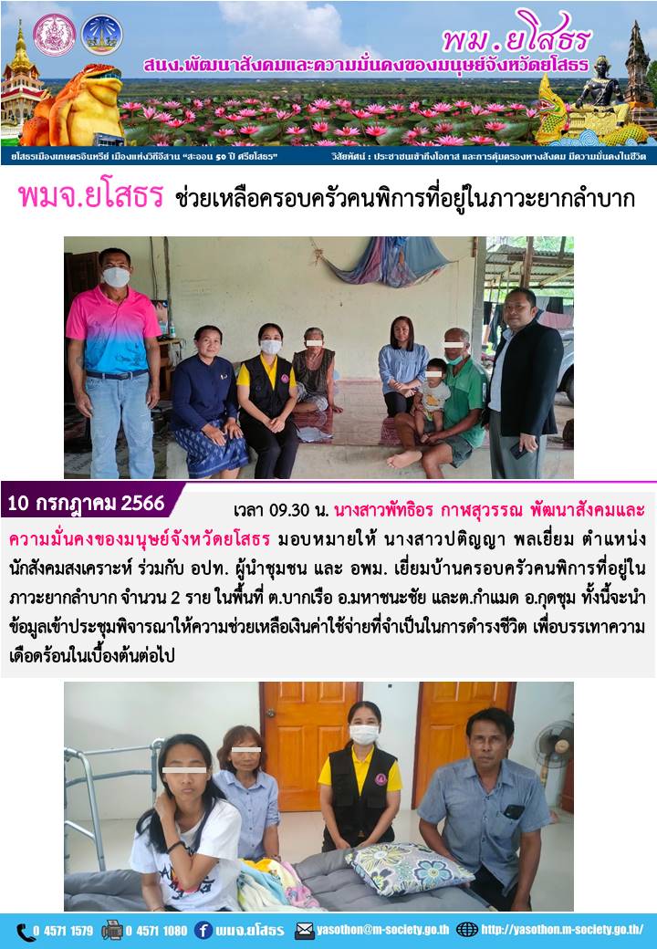 พมจ.ยโสธร ช่วยเหลือครอบครัวคนพิการที่อยู่ในภาวะยากลำบาก (10 กรกฎาคม 2566)