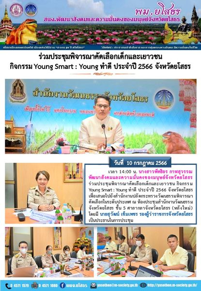พมจ.ยโสธร ร่วมประชุมพิจารณาคัดเลือกเด็กและเยาวชน กิจกรรม Young Smart : Young ทำดี ประจำปี 2566 จังหวัดยโสธร (10 กรกฎาคม 2566)