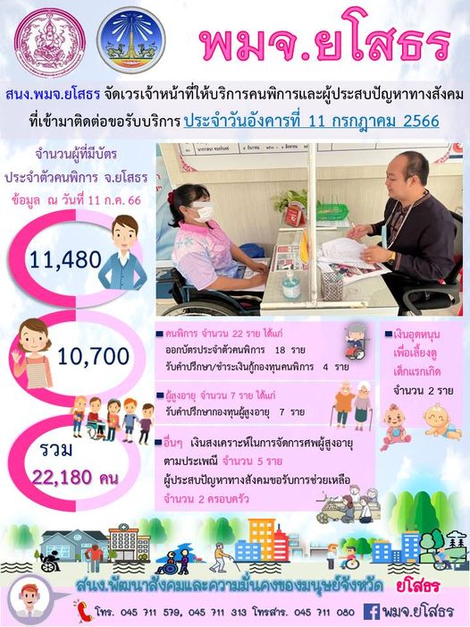 สนง.พมจ.ยโสธร จัดเวรเจ้าหน้าที่ให้บริการคนพิการและผู้ประสบปัญหาทางสังคม ที่เข้ามาติดต่อขอรับบริการ (11 กรกฎาคม 2566)