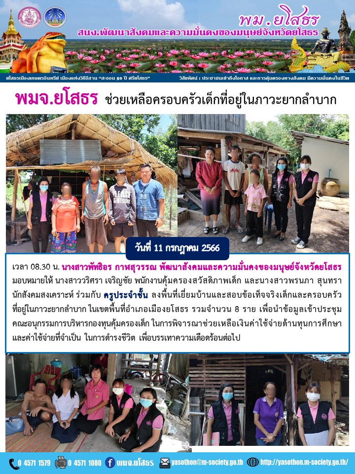 พมจ.ยโสธร ช่วยเหลือเด็กที่อยู่ในภาวะยากลำบาก (11 กรกฎาคม 2566)