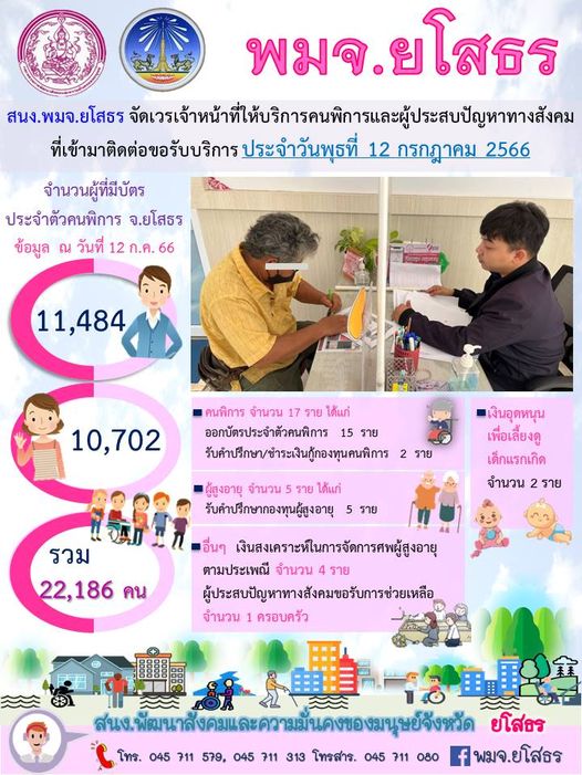 สนง.พมจ.ยโสธร จัดเวรเจ้าหน้าที่ให้บริการคนพิการและผู้ประสบปัญหาทางสังคม ที่เข้ามาติดต่อขอรับบริการ (12 กรกฎาคม 2566)