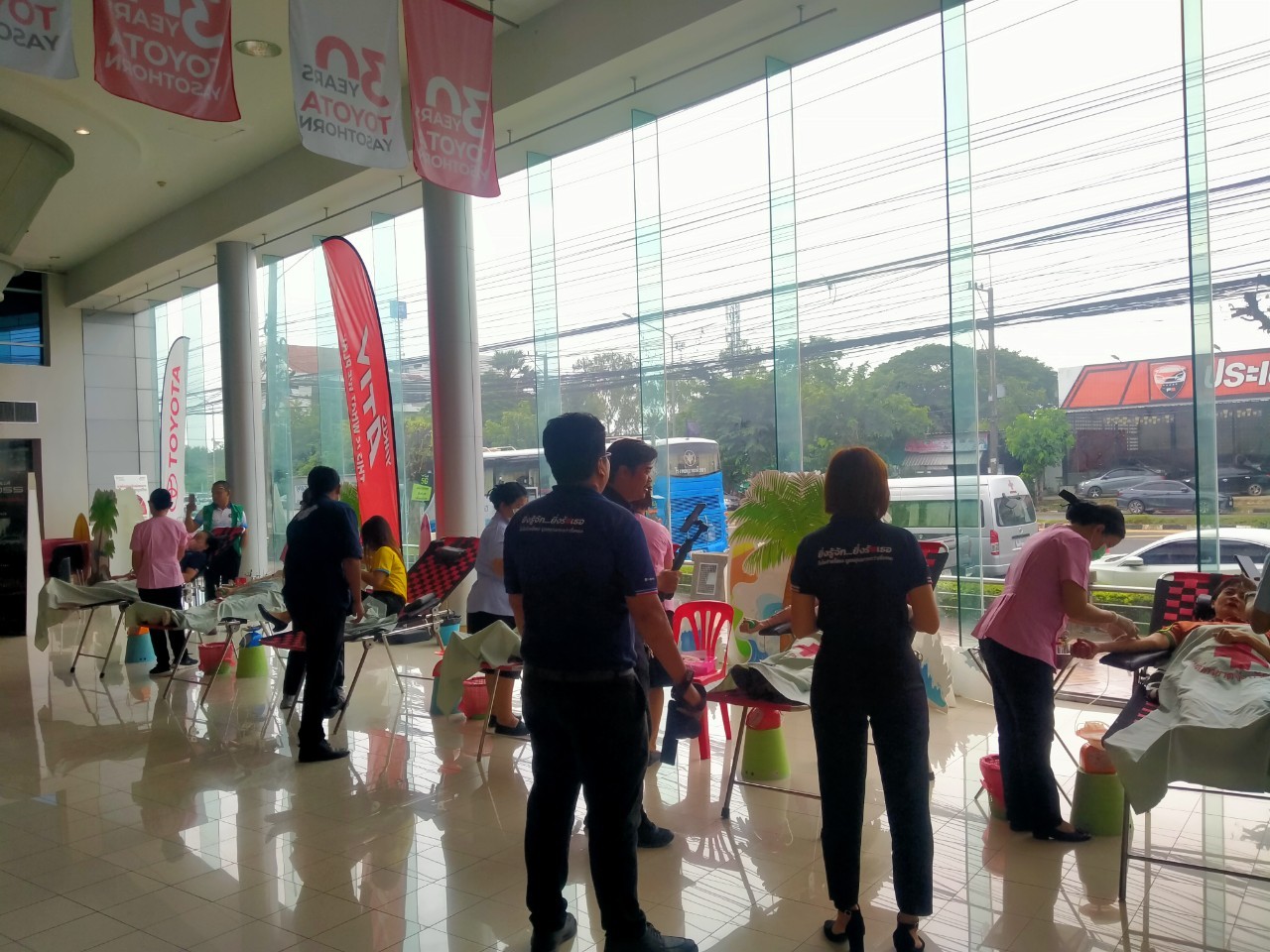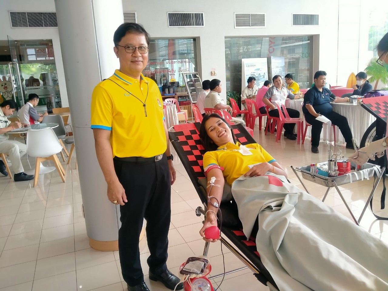 วันที่ 27 ก.ค. 2566 (10:46 น.)วันพฤหัสบดีที่ 20 กรกฎาคม 2566 เวลา 08.30 น. นายพนมพร ชวนอุดม สวัสดิการและคุ้มครองแรงงานจังหวัดยโสธร พร้อมด้วยเจ้าหน้าที่สำนักงานฯ ร่วมกับธนาคารเลือดโรงพยาบาลยโสธร ดำเนินการตามโครงการรวมพลังแรงงานยโสธร จิตอาสาร่วมทำดี บริจาคโลหิตด้วยหัวใจ โดยมีวัตถุประสงค์เพื่อให้นายจ้าง ลูกจ้าง ประชาชนทั่วไปร่วมกันบำเพ็ญสาธารณประโยชน์ร่วมบริจาคโลหิตเพื่อให้โรงพยาบาลยโสธรสำรองไว้สำหรับกรณีฉุกเฉินหรือจำเป็น ณ บริษัท โตโยต้ายโสธร จำกัด โดยมีเจ้าหน้าที่สำนักงานฯ นายจ้าง ลูกจ้าง และประชาชนทั่วไป ร่วมบริจาคโลหิต รวมทั้งสิ้น จำนวน 53 คน