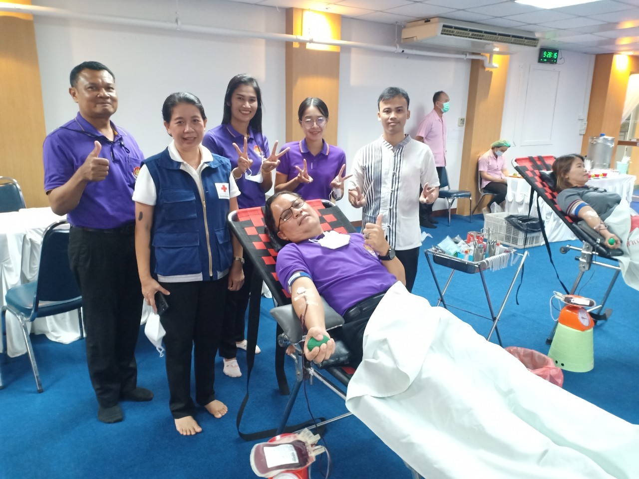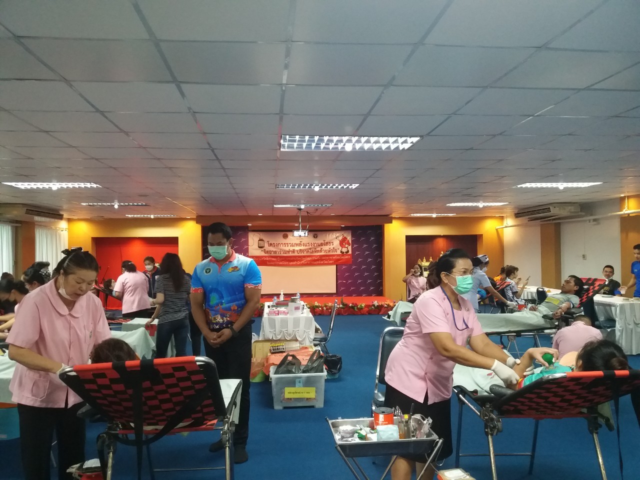 วันที่ 27 ก.ค. 2566 (10:52 น.)วันศุกร์ที่ 21 กรกฎาคม 2566 เวลา 08.30 น. นายพนมพร ชวนอุดม สวัสดิการและคุ้มครองแรงงานจังหวัดยโสธร พร้อมด้วยเจ้าหน้าที่สำนักงานฯ ร่วมกับธนาคารเลือดโรงพยาบาลยโสธร ดำเนินการตามโครงการรวมพลังแรงงานยโสธร จิตอาสาร่วมทำดี บริจาคโลหิตด้วยหัวใจ โดยมีวัตถุประสงค์เพื่อให้นายจ้าง ลูกจ้าง ประชาชนทั่วไปร่วมกันบำเพ็ญสาธารณประโยชน์ร่วมบริจาคโลหิตเพื่อให้โรงพยาบาลยโสธรสำรองไว้สำหรับกรณีฉุกเฉินหรือจำเป็น ณ บริษัท ซาบีน่า จำกัด (มหาชน) มีเจ้าหน้าที่สำนักงานฯ นายจ้าง ลูกจ้าง และประชาชนทั่วไป ร่วมบริจาคโลหิต รวมทั้งสิ้น จำนวน 73 คน