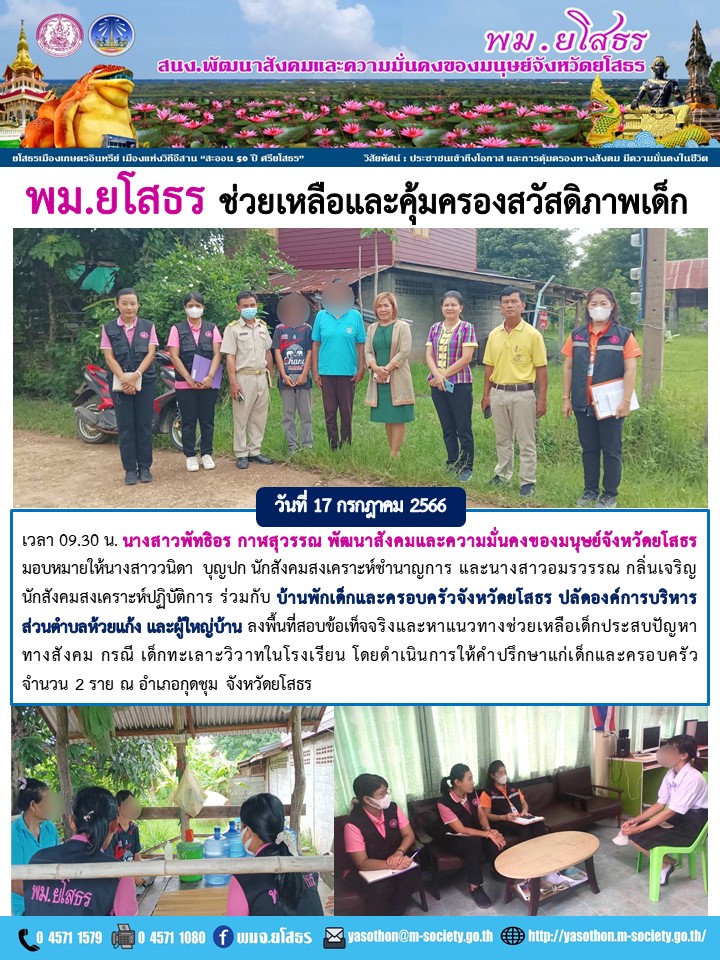 พม.ยโสธร ช่วยเหลือและคุ่มครองสวัสดิภาพเด็ก (17 กรกฎาคม 2566)