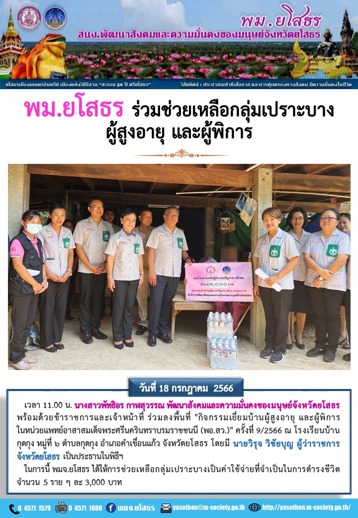 พม.ยโสธร ร่วมช่วยเหลือกลุ่มเปราะบาง ผู้สูงอายุ และผู้พิการ (18 กรกฎาคม 2566)