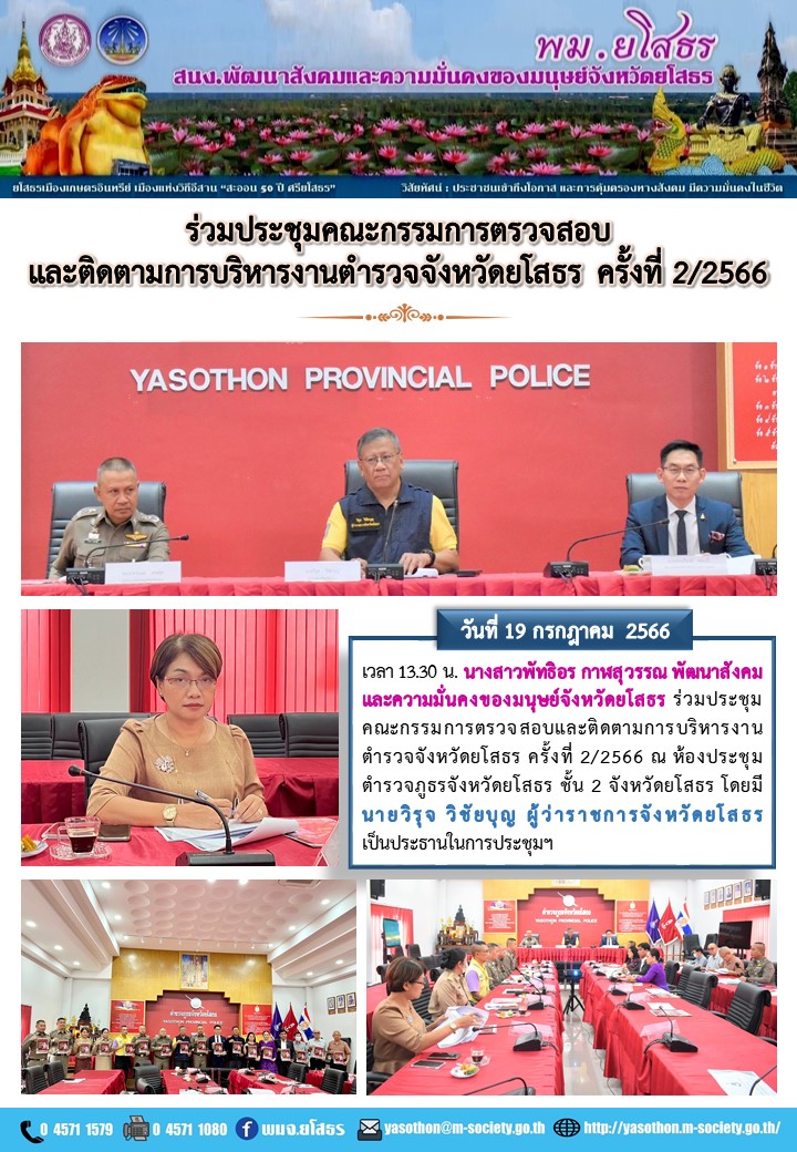ร่วมประชุมคณะกรรมการตรวจสอบและติดตามการบริหารงานตำรวจจังหวัดยโสธร ครั้งที่ 2/2566 (19 กรกฎาคม 2566)