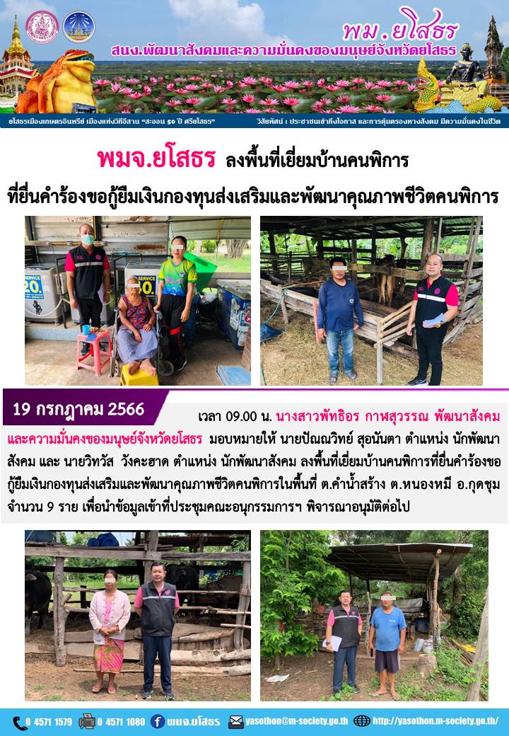 พมจ.ยโสธร ลงพื้นที่เยี่ยมบ้านคนพิการที่ยื่นคำร้อง ขอกู้ยืมเงินกองทุนส่งเสริมและพัฒนาคุณภาพชีวิตคนพิการ (19 กรกฎาคม 2566)