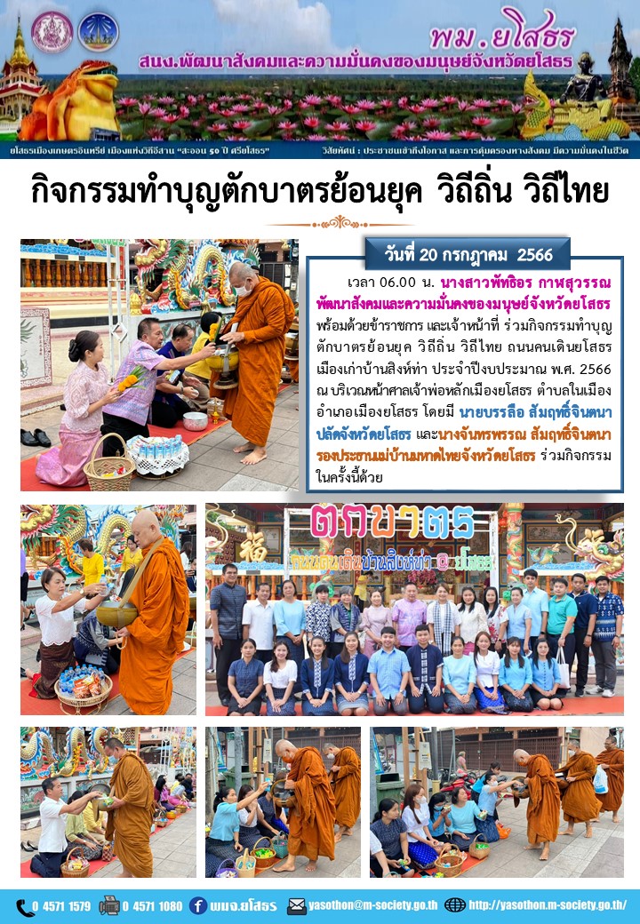 กิจกรรมทำบุญตักบาตรย้อนยุค วิถีถิ่น วิถีไทย ถนนคนเดินยโสธร เมืองเก่าบ้านสิงห์ท่า ประจำปีงบประมาณ พ.ศ. 2566 (20 กรกฎาคม 2566)