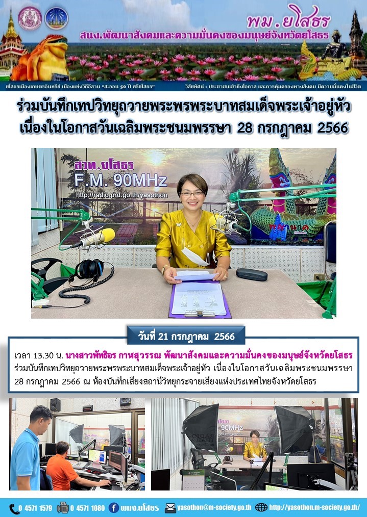 ร่วมบันทึกเทปวิทยุถวายพระพรพระบาทสมเด็จพระเจ้าอยู่หัว นื่องในโอกาสวันเฉลิมพระชนมพรรษา 28 กรกฎาคม 2566 (21 กรกฎาคม 2566)