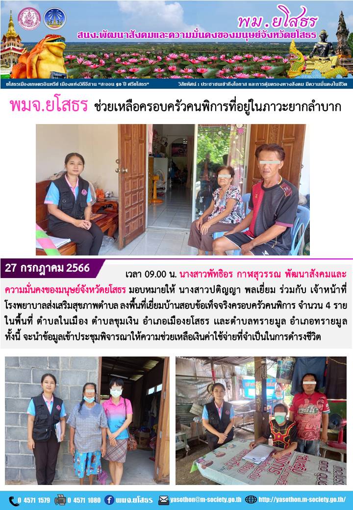 พมจ.ยโสธร ช่วยเหลือครอบครัวคนพิการที่อยู่ในภาวะยากลำบาก (27 กรกฎาคม 2566)