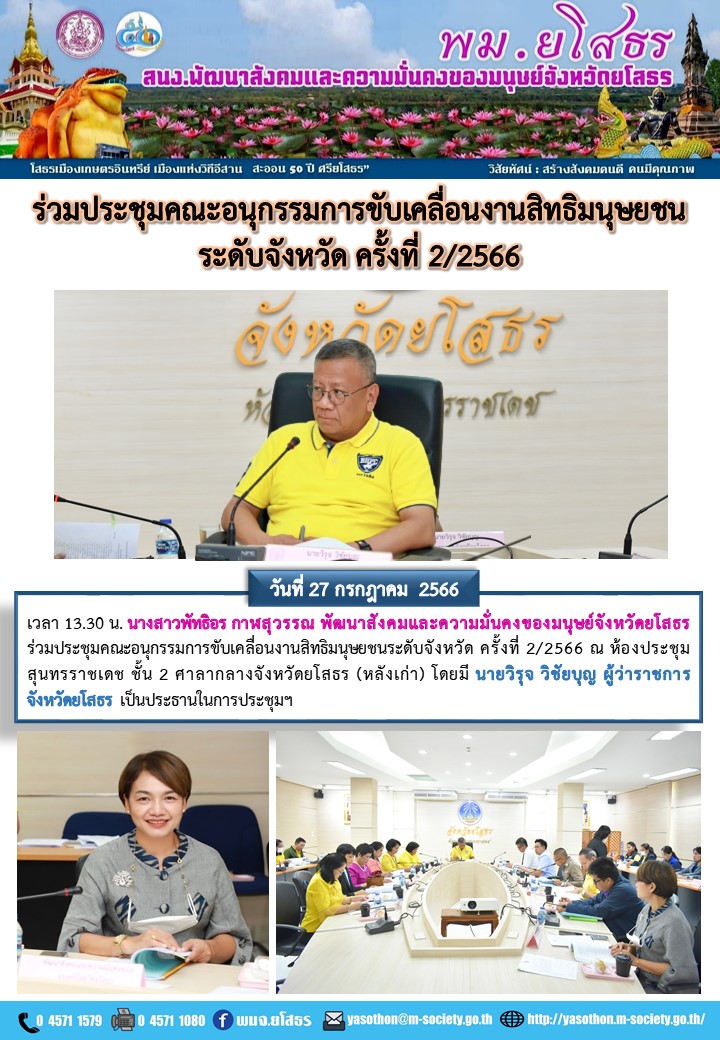 ร่วมประชุมคณะอนุกรรมการขับเคลื่อนงานสิทธิมนุษยชนระดับจังหวัด ครั้งที่ 2/2566 (27 กรกฎาคม 2566)