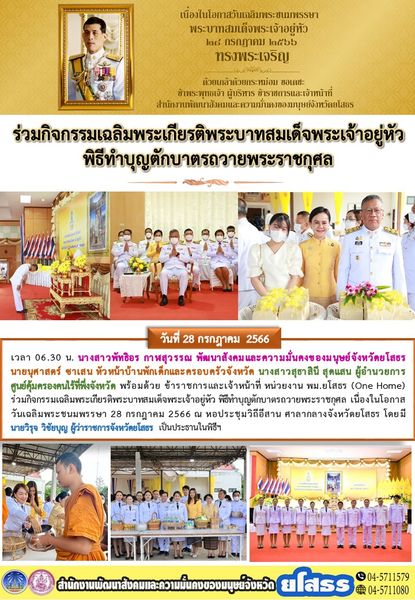 ร่วมกิจกรรมเฉลิมพระเกียรติพระบาทสมเด็จพระเจ้าอยู่หัว พิธีทำบุญตักบาตรถวายพระราชกุศล (28 กรกฎาคม 2566)