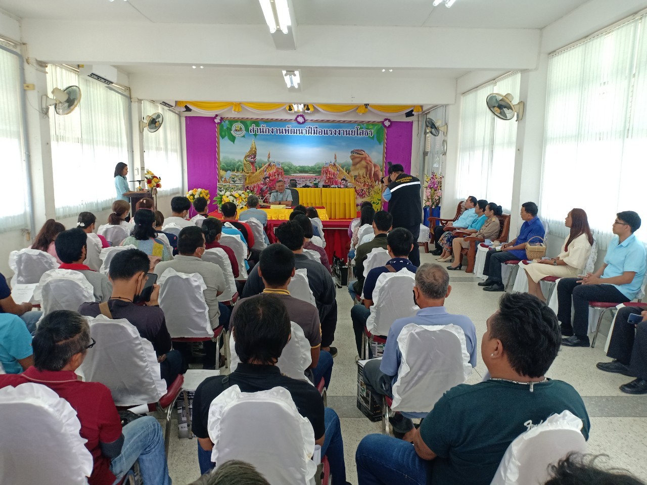 วันที่ 4 ส.ค. 2566 (13:19 น.)วันศุกร์ที่ 4 สิงหาคม 2566 เวลา 10.00 น. นายพนมพร ชวนอุดม สวัสดิการและคุ้มครองแรงงานจังหวัดยโสธร มอบหมายให้นายสุวิทย์ กุลวงค์ นักวิชาการแรงงานชำนาญการ ร่วมพิธีมอบชุดเครื่องมือทำมาหากินให้กับผู้ผ่านการฝึกอบรม หลักสูตร ช่างแต่งผมบุรุษ จำนวน 20 คน และหลักสูตร การเชื่อมประกอบผลิตภัณฑ์ จำนวน 20 คน ต ามโครงการประชุมเชิงปฏิบัติงานการเสริมสร้างความรู้ในการจัดทำแผนธุรกิจ เพื่อประกอบอาชีพอิสระของผู้ผ่านการฝึกอบรม ภายใต้โครงการพัฒนาทักษะเฉพาะของแรงงานยุคอิสระ 4.0 (Gig Worker) ณ ห้องประชุมไตรเทวา 2 อาคารฝึกอบรมคอมพิวเตอร์ ชั้น 1 สำนักงานพัฒนาฝีมือแรงงานยโสธร โดยมีนายวิรุจ วิชัยบุญ ผู้ว่าราชการจังหวัดยโสธร เป็นประธาน
