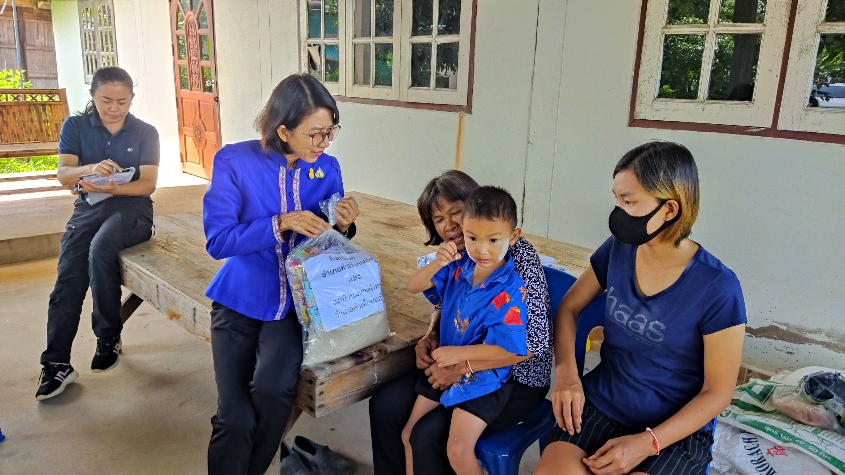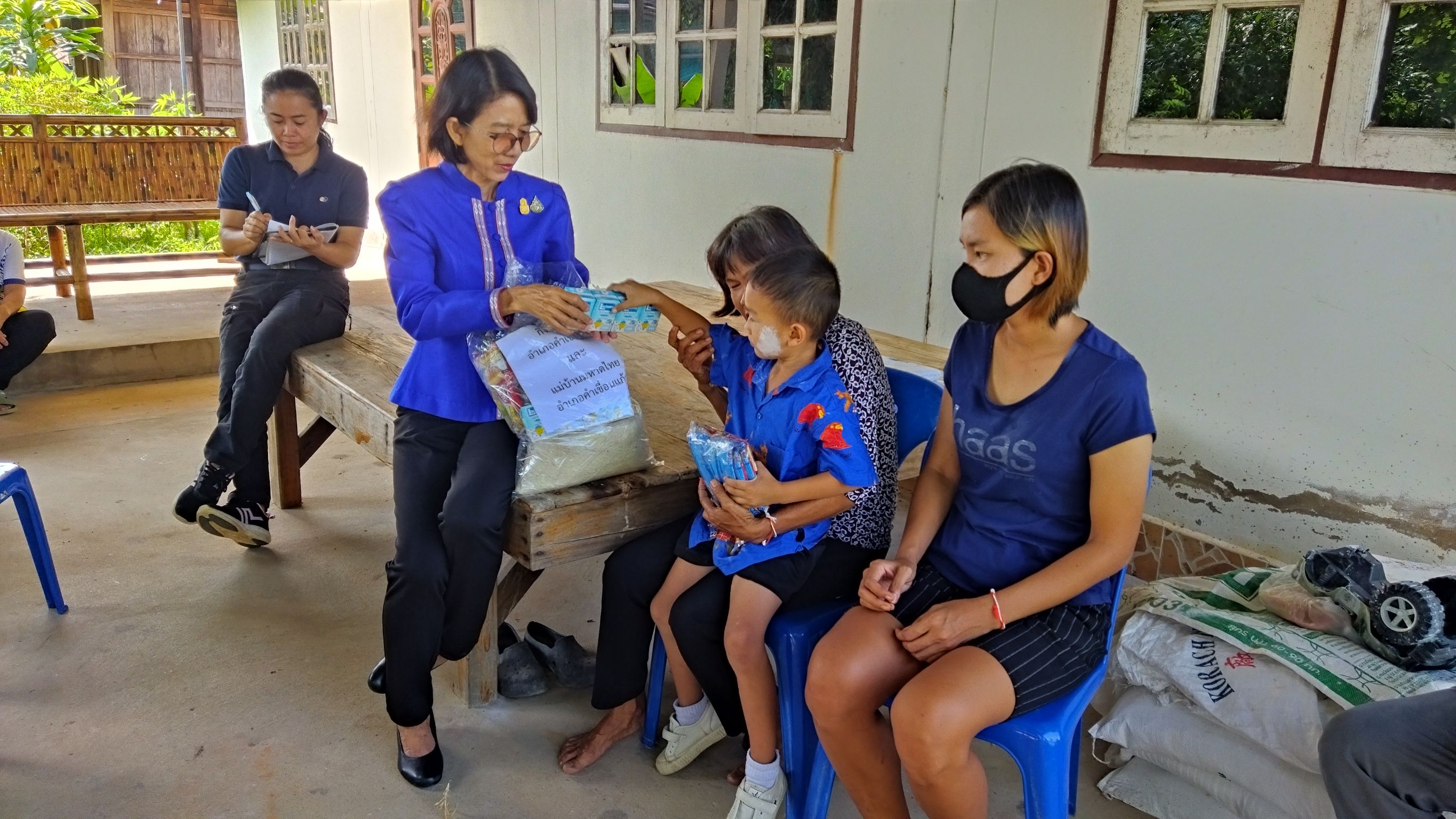 วันที่ 11 ส.ค. 2566 (16:09 น.)วันที่ ๘ สิงหาคม ๒๕๖๖ เวลา ๑๕.๐๐ น. นางยุพิน ภัทรกุลพงศ์ นายอำเภอคำเขื่อนแก้ว พร้อมด้วย ปลัดอำเภอ สมาชิกแม่บ้านมหาดไทยอำเภอคำเขื่อนแก้ว ลงพื้นที่เยี่ยมให้กำลังใจและมอบสิ่งของให้แก่ครอบครัวผู้เปราะบางในพื้นที่ บ้านหนองเทา หมู่ที่ ๔ ตำบลนาแก อำเภอคำเขื่อนแก้ว จังหวัดยโสธร โดยมี ผู้ใหญ่บ้าน ผู้ช่วยผู้ใหญ่บ้าน คณะกรรมการหมู่บ้าน และอสม.ในพื้นที่ ร่วมเยี่ยมให้กำลังใจ และอำนวยความสะดวกในครั้งนี้
