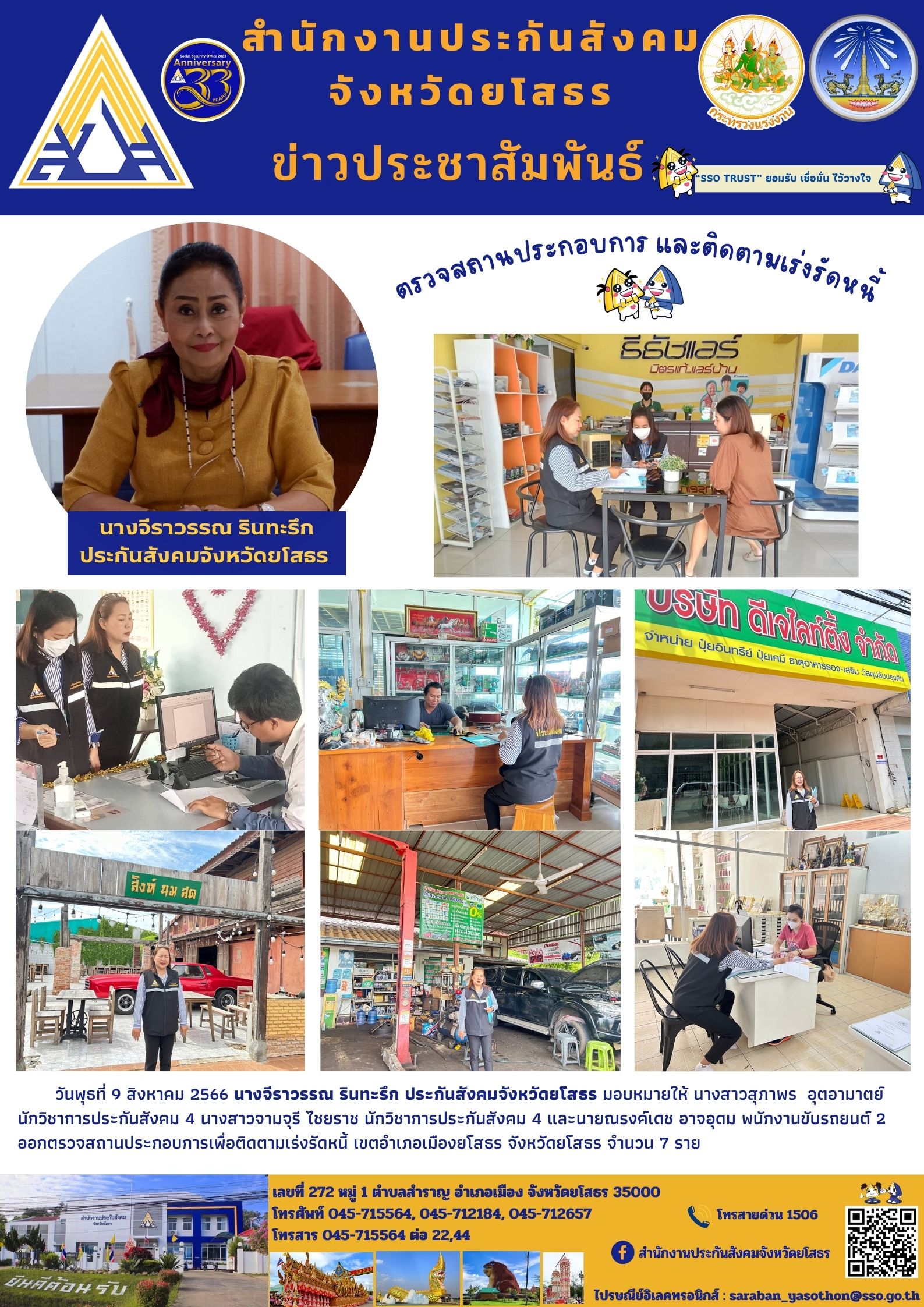 ออกตรวจสถานประกอบการเพื่อติดตามเร่งรัดหนี้ เขตอำเภอเมืองยโสธร จังหวัดยโสธร จำนวน 7 ราย