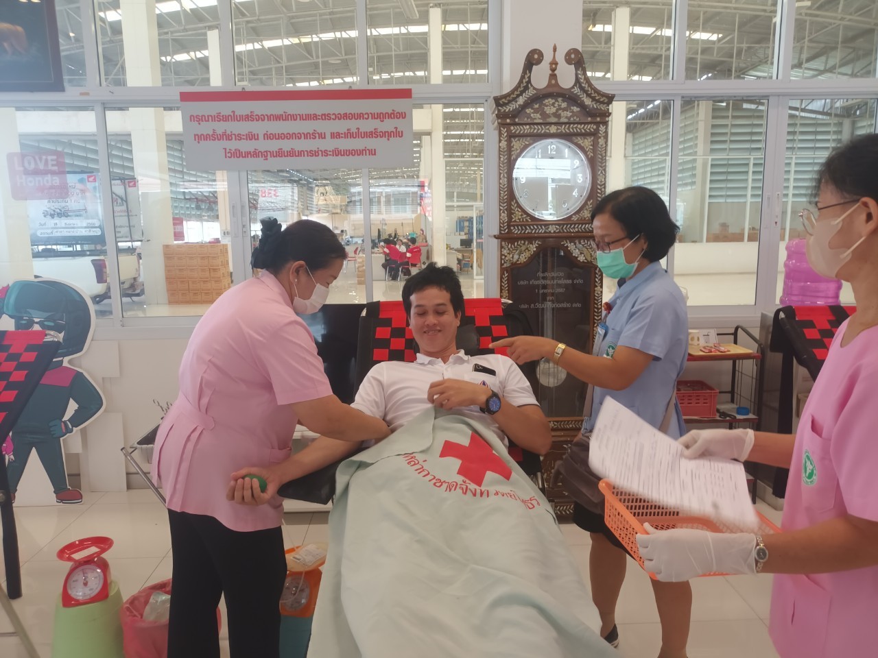 วันที่ 15 ส.ค. 2566 (14:03 น.)วันอังคารที่ 15 สิงหาคม 2566 เวลา 08.30 น. นายพนมพร ชวนอุดม สวัสดิการและคุ้มครองแรงงานจังหวัดยโสธร พร้อมด้วยเจ้าหน้าที่สำนักงานฯ ร่วมกับธนาคารเลือดโรงพยาบาลยโสธร ดำเนินการตามโครงการรวมพลังแรงงานยโสธร จิตอาสาร่วมทำดี บริจาคโลหิตด้วยหัวใจ โดยมีวัตถุประสงค์เพื่อให้นายจ้าง ลูกจ้าง ประชาชนทั่วไปร่วมกันบำเพ็ญสาธารณประโยชน์ร่วมบริจาคโลหิตเพื่อให้โรงพยาบาลยโสธรสำรองไว้สำหรับกรณีฉุกเฉินหรือจำเป็น ณ บริษัท เกียรติสุรนนท์ ยโสธร จำกัด มีเจ้าหน้าที่สำนักงานฯ นายจ้าง ลูกจ้าง และประชาชนทั่วไป ร่วมบริจาคโลหิต รวมทั้งสิ้น จำนวน 47 คน