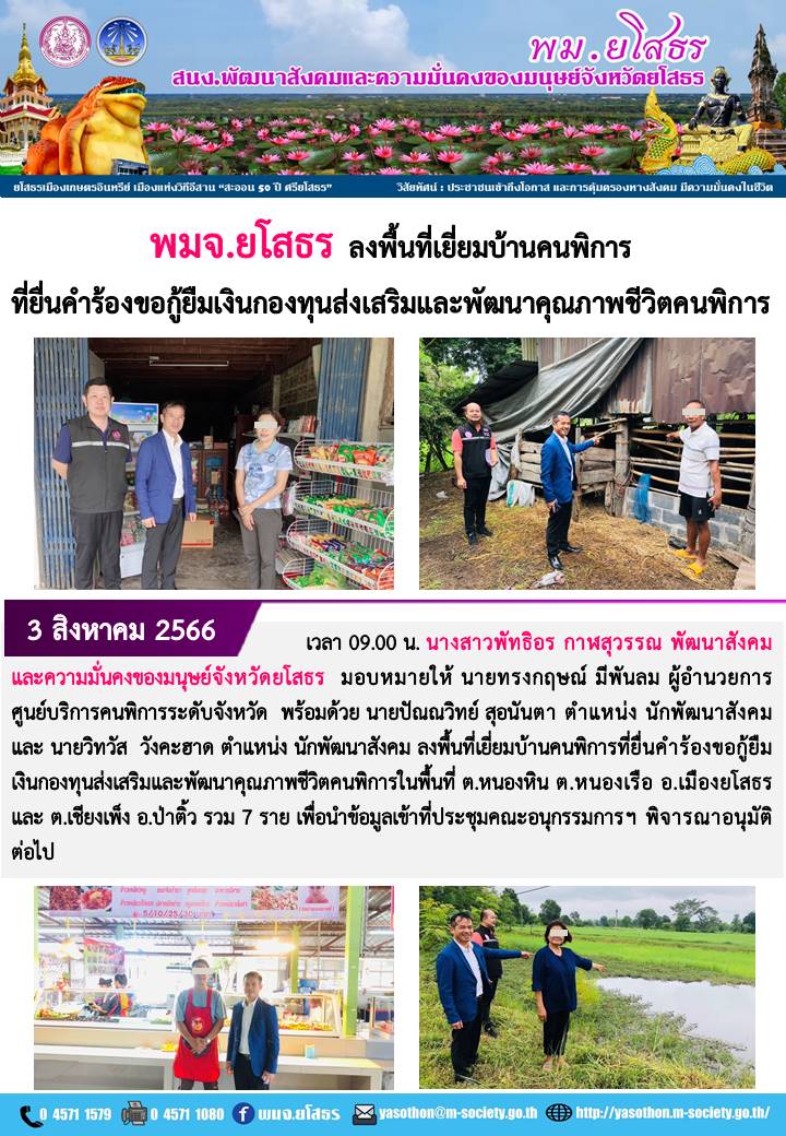 ผู้โพสต์ : [สำนักงานพัฒนาสังคมและความมั่นคงของมนุษย์จังหวัดยโสธร] ทั่วไป