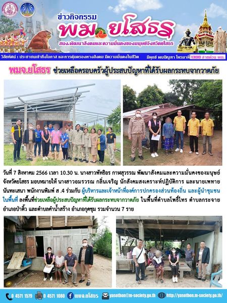 พมจ.ยโสธร ช่วยเหลือครอบครัวผู้ประสบปัญหาที่ได้รับผลกระทบจากวาตภัย (7 สิงหาคม 2566)