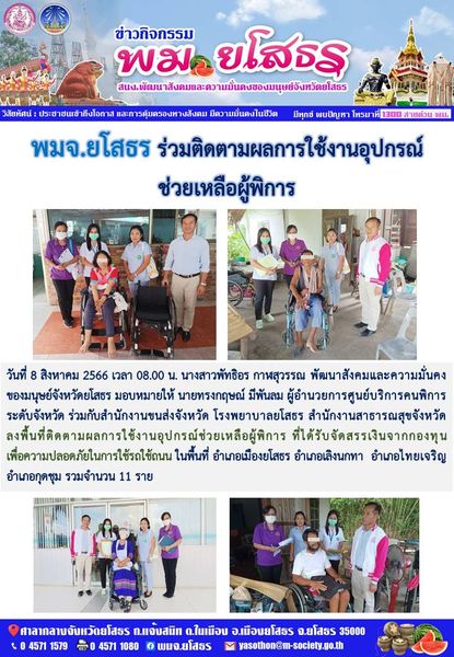 พมจ.ยโสธร ร่วมติดตามผลการใช้งานอุปกรณ์ช่วยเหลือเหลือผู้พิการ (8 สิงหาคม 2566)