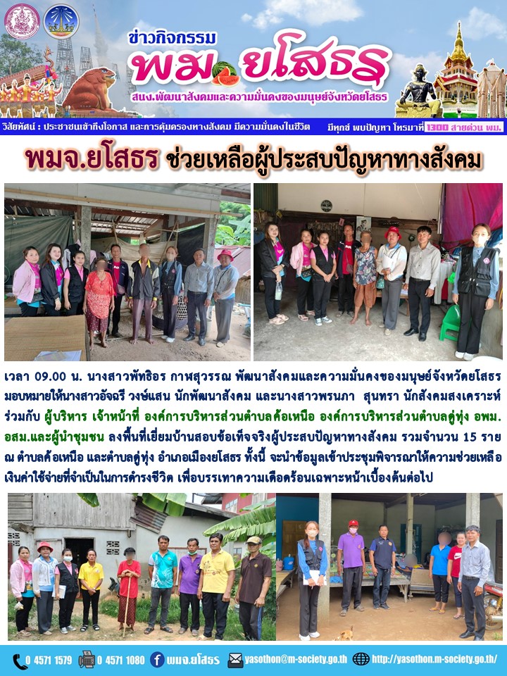 พมจ.ยโสธร ช่วยเหลือผู้ประสบปัญหาทางสังคม (8 สิงหาคม 2566 2566)