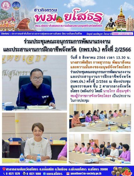 ร่วมประชุมคณะอนุกรรมการพัฒนาแรงงานและประสานงานการฝึกอาชีพจังหวัด (กพร.ปจ.) ครั้งที่ 2/2566 (8 สิงหาคม 2566)