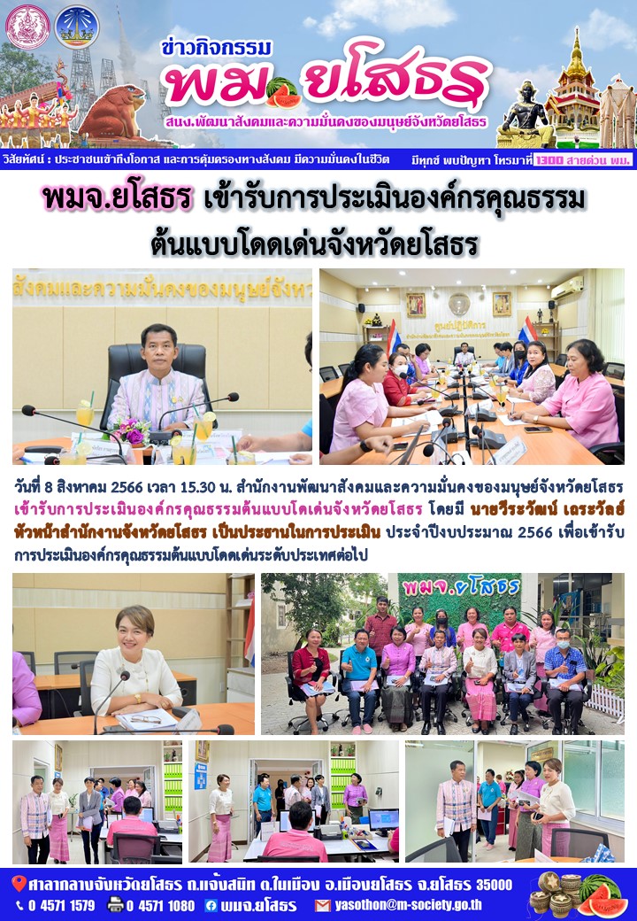 พมจ.ยโสธร เข้ารับการประเมินองค์กรคุณธรรม ต้นแบบโดดเด่นจังหวัดยโสธร (8 สิงหาคม 2566)