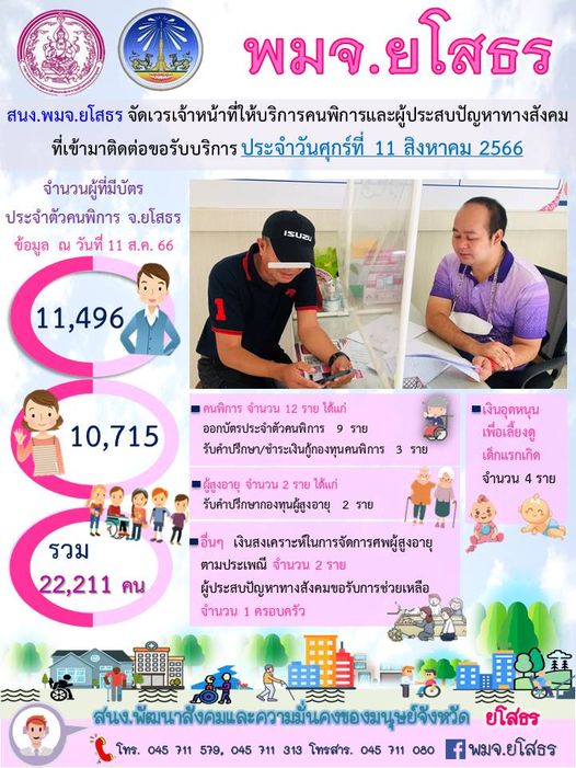 สนง.พมจ.ยโสธร จัดเวรเจ้าหน้าที่ให้บริการคนพิการและผู้ประสบปัญหาทางสังคม ที่เข้ามาติดต่อขอรับบริการ (11 สิงหาคม 2566)