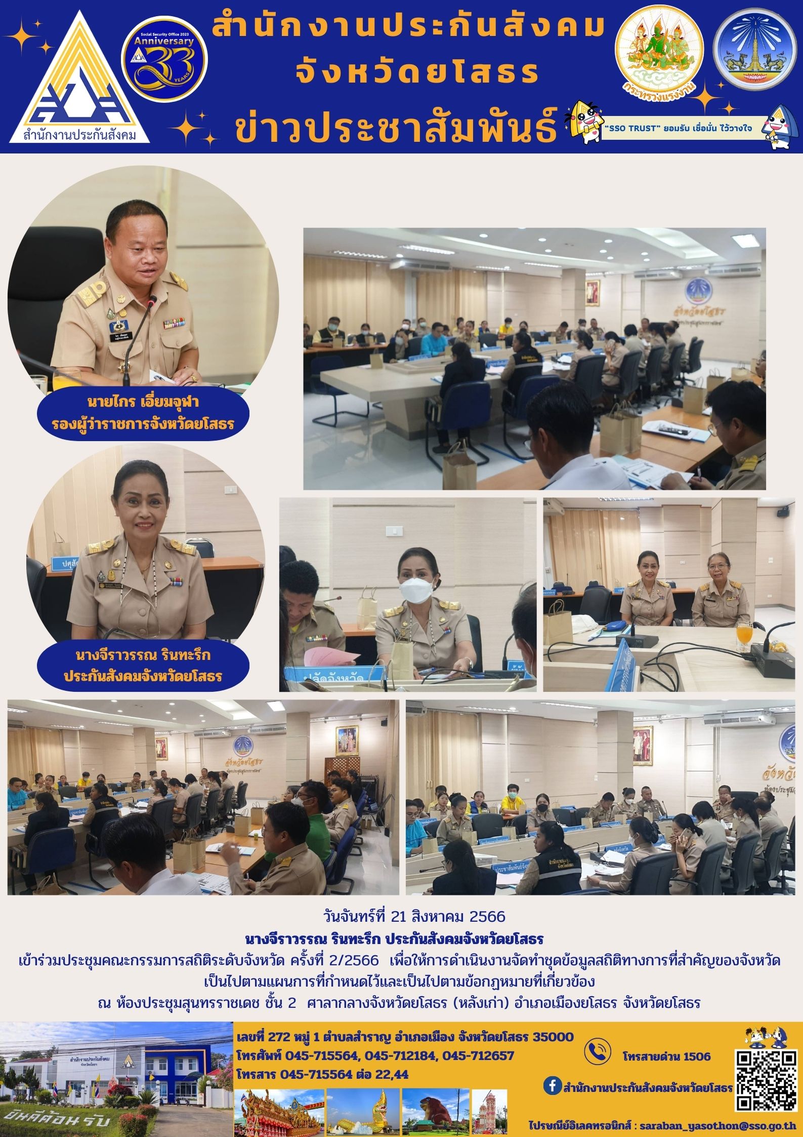 ประกันสังคมจังหวัดยโสธร เข้าร่วมประชุมคณะกรรมการสถิติระดับจังหวัด ครั้งที่ 2/2566