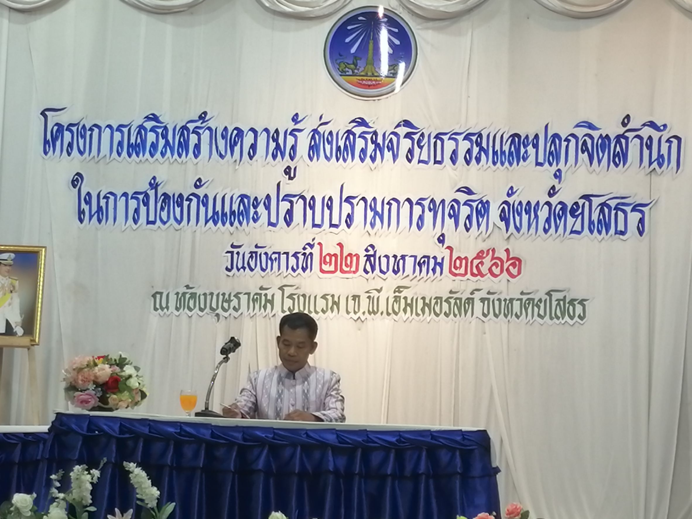 วันที่ 23 ส.ค. 2566 (10:02 น.)วันอังคารที่ 22 สิงหาคม 2566 เวลา 09.00 น. นายพนมพร ชวนอุดม สวัสดิการและคุ้มครองแรงงาน จังหวัดยโสธร มอบหมายให้นางสาวภัทรานิษฐ์ คงนิน นักวิชาการแรงงานชำนาญการ เข้าร่วม โครงการเสริมสร้างความรู้ ส่งเสริมจริยธรรมและปลูกจิตสำนึกในการป้องกันและปราบปราม การทุจริตจังหวัดยโสธร ณ ห้องบุษราคัม โรงแรม เจ.พี. เอ็มเมอรัลด์ อำเภอเมืองยโสธร จังหวัดยโสธร โดยมีนายวีระวัฒน์ เถระวัลย์ หัวหน้าสำนักงานจังหวัดยโสธร เป็นประธาน ทั้งนี้ เพื่อสร้างความรู้ ความเข้าใจเกี่ยวกับกฎหมายและยุทธศาสตร์ที่เกี่ยวข้องกับการป้องกันและปราบปรามการทุจริต สถานการณ์การทุจริตคอร์รัปชั่นในระดับต่าง ๆ การเสริมสร้างทัศนคติและค่านิยมเกี่ยวกับการป้องกันและปราบปรามการทุจริต