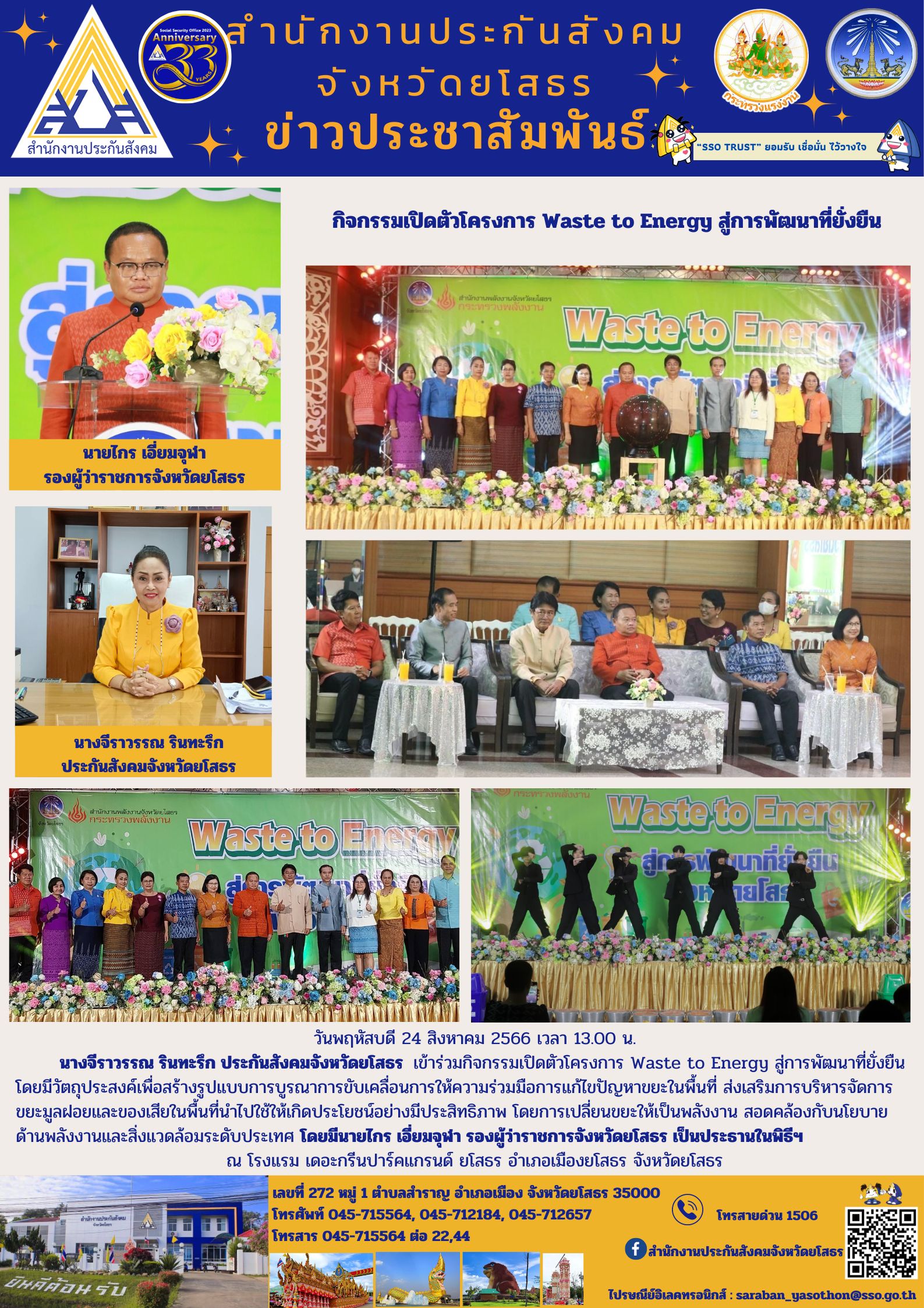 ประกันสังคมจังหวัดยโสธร เข้าร่วมกิจกรรมเปิดตัวโครงการ Waste to Energy สู่การพัฒนาที่ยั่งยืน