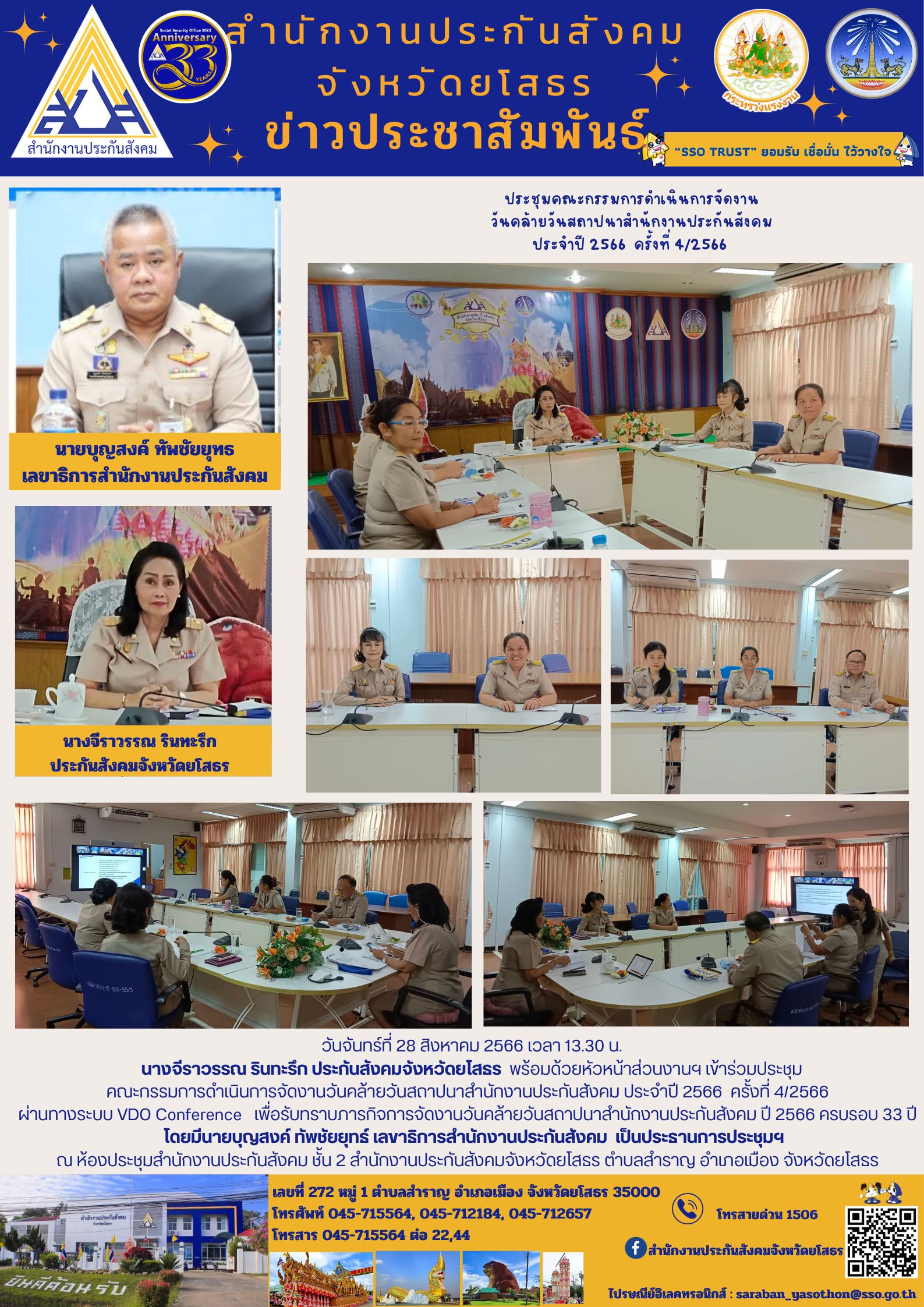คณะกรรมการดำเนินการจัดงานวันคล้ายวันสถาปนาสำนักงานประกันสังคม ประจำปี 2566 ครั้งที่ 4/2566