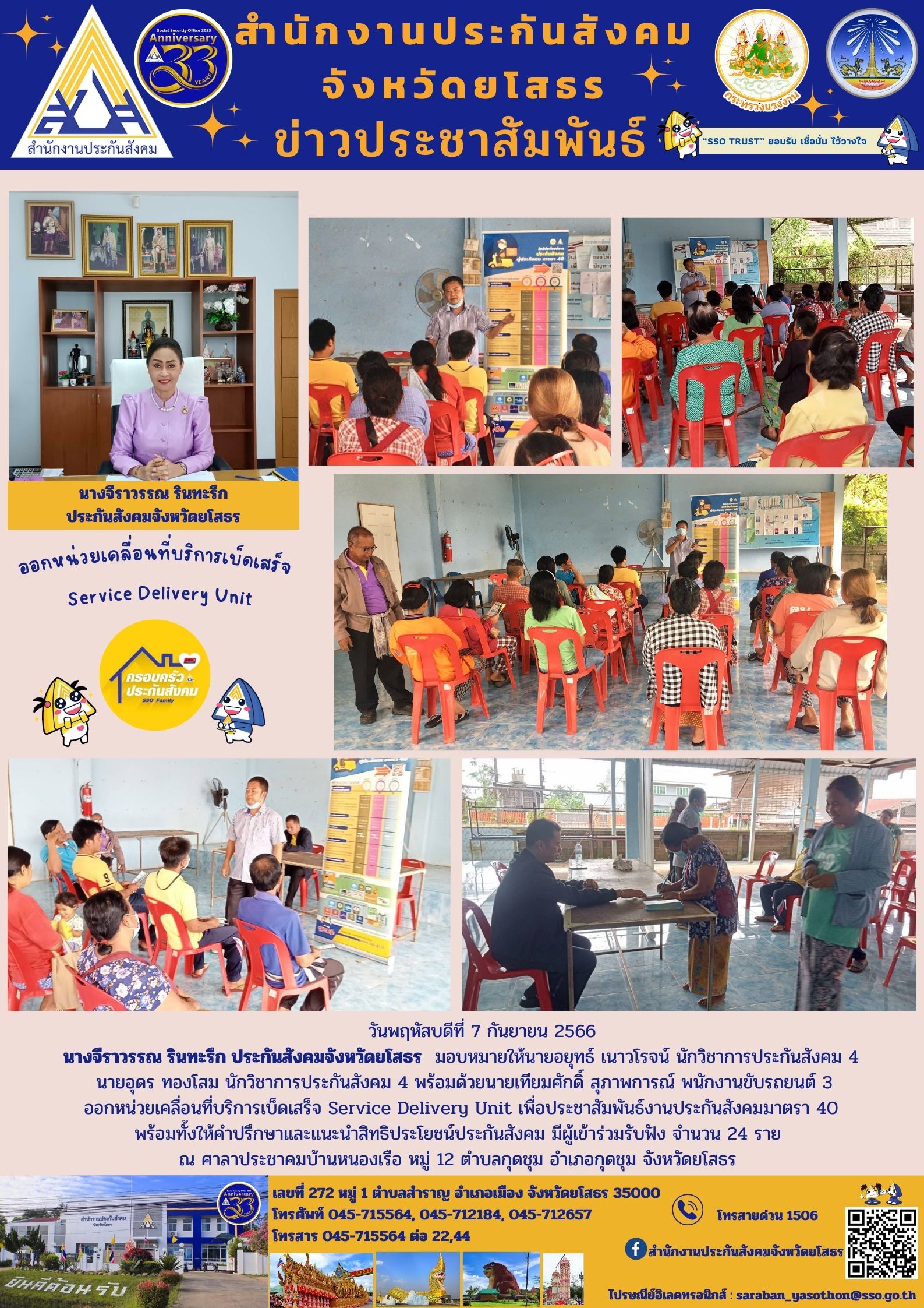 ออกหน่วยเคลื่อนที่บริการเบ็ดเสร็จ Service Delivery Unit เพื่อประชาสัมพันธ์งานประกันสังคมมาตรา 40