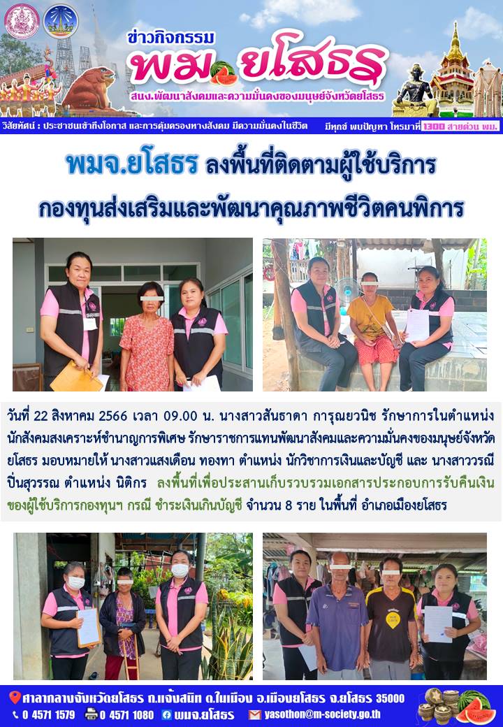 พมจ.ยโสธร ลงพื้นที่เพื่อประสานเก็บรวบรวมเอกสารประกอบการรับคืนเงินของผู้ใช้บริการกองทุนฯ (22 สิงหาคม 2566)