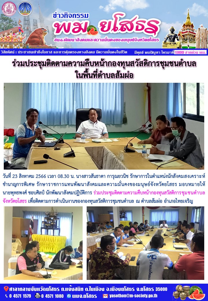 ร่วมประชุมติดตามความคืบหน้ากองทุนสวัสดิการชุมชนตำบลจังหวัดยโสธร เพื่อติดตามการดำเนินงานของกองทุนสวัสดิการชุมชนตำบล (23 สิงหาคม 2566)